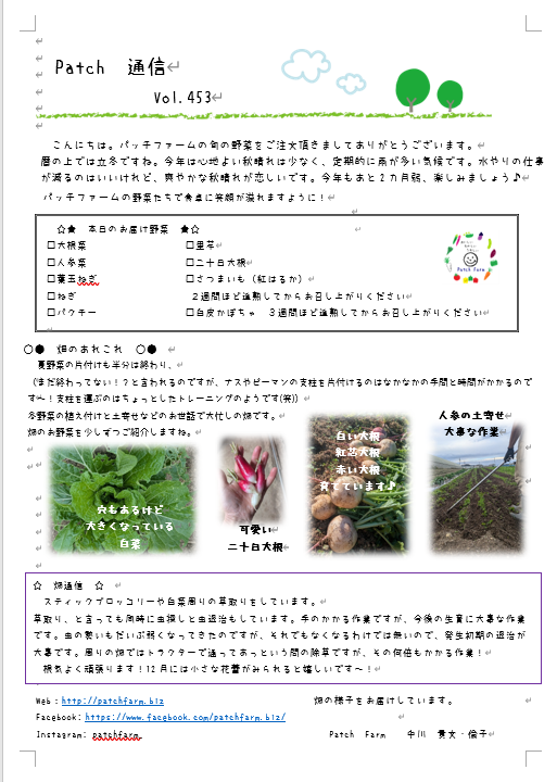「おいしい・たのしい・うれしい」彩りと旬を大切にした栽培期間中農薬不使用の安心野菜をお届けします。